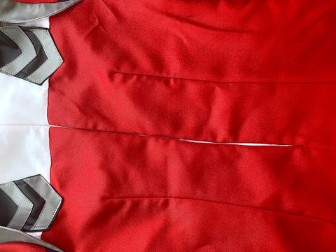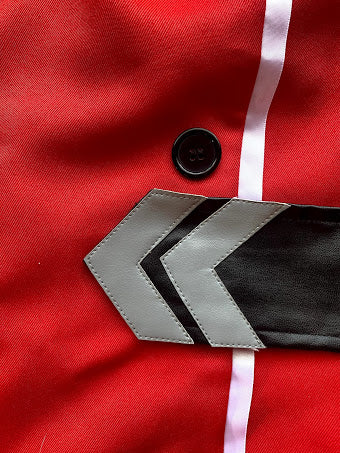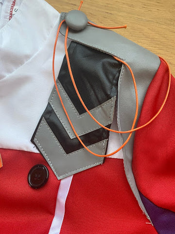 The belt is also made with fake leather and you can there sewn velcro in the right and left side of costume to put it on in a easy way.