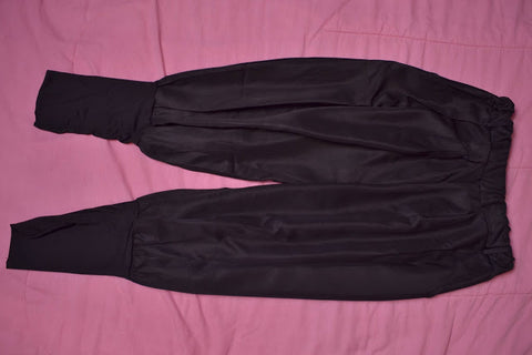 The pants which are really very comfortable and it has an elastic band on the top which makes it mold to your body. And at the bottom it has an elastic fabric so that it molds correctly to your calf's. It has pockets on the bottom which I thought was pretty good.
