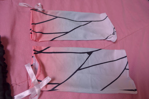 It also comes with wig accesory and a pair of legwarmers. These are basically like socks but without the tip, the material with which they are made is printed gradient.
