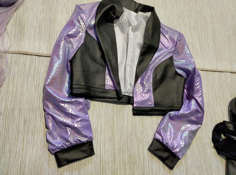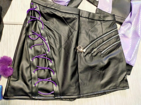 Here you can see the full set: coat, top, skirt, earrings, bracelets, leggings, stockings and the wig.