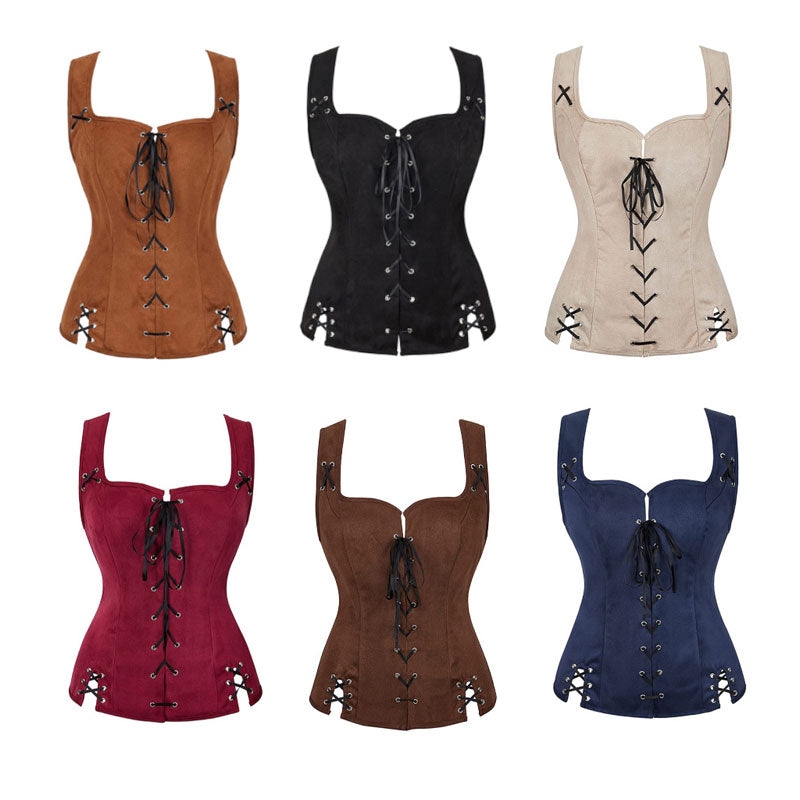 European Style Renaissance Punk Pirate Suede Lace-Up Vest Cosplay Costumes