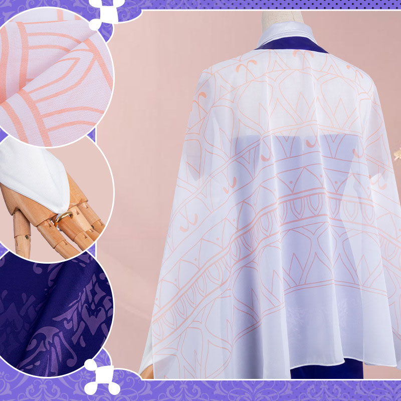 Included Items: Cloak, sleeves, headdress, skirt, collar ornament, shoulder strap, ring.