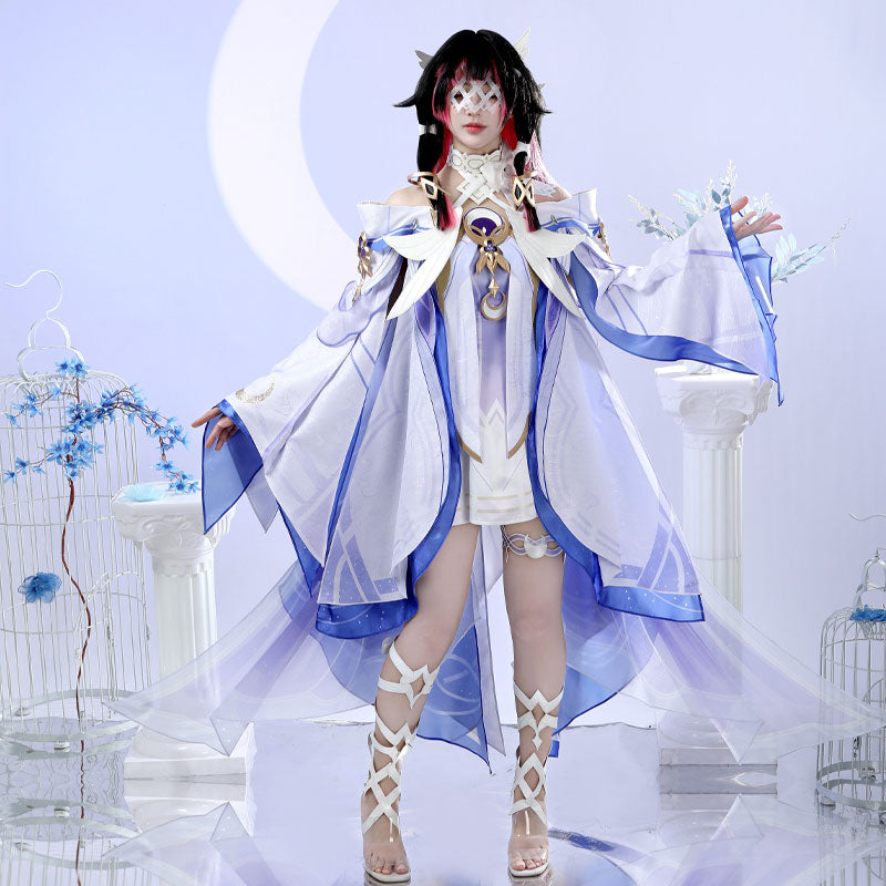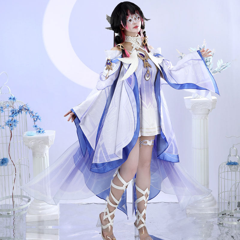 Features: This cosplay costume is based on the character Columbina Damslette from Genshin Impact. It can be used in cosplay conventions and Halloween parties.