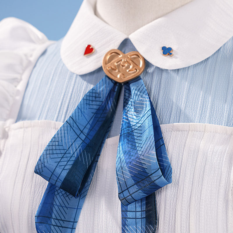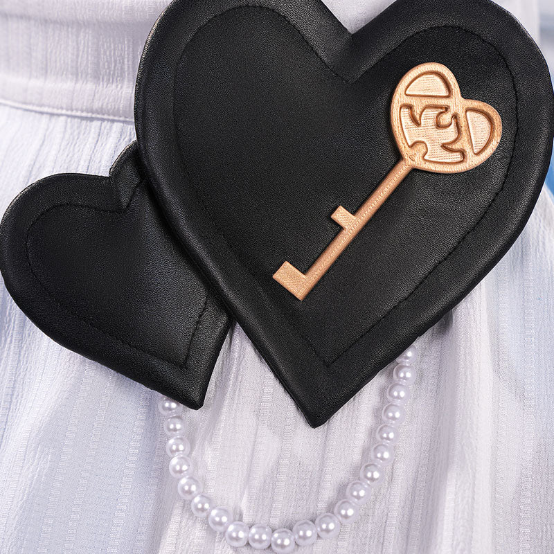 Included Items: Dress, apron, gloves x2, over-the-knee socks x2, headwear x2, earrings x2, pearl chain, collar decoration x2, bows*2, hot-melt glue stick*1, hearts*2+key*1.