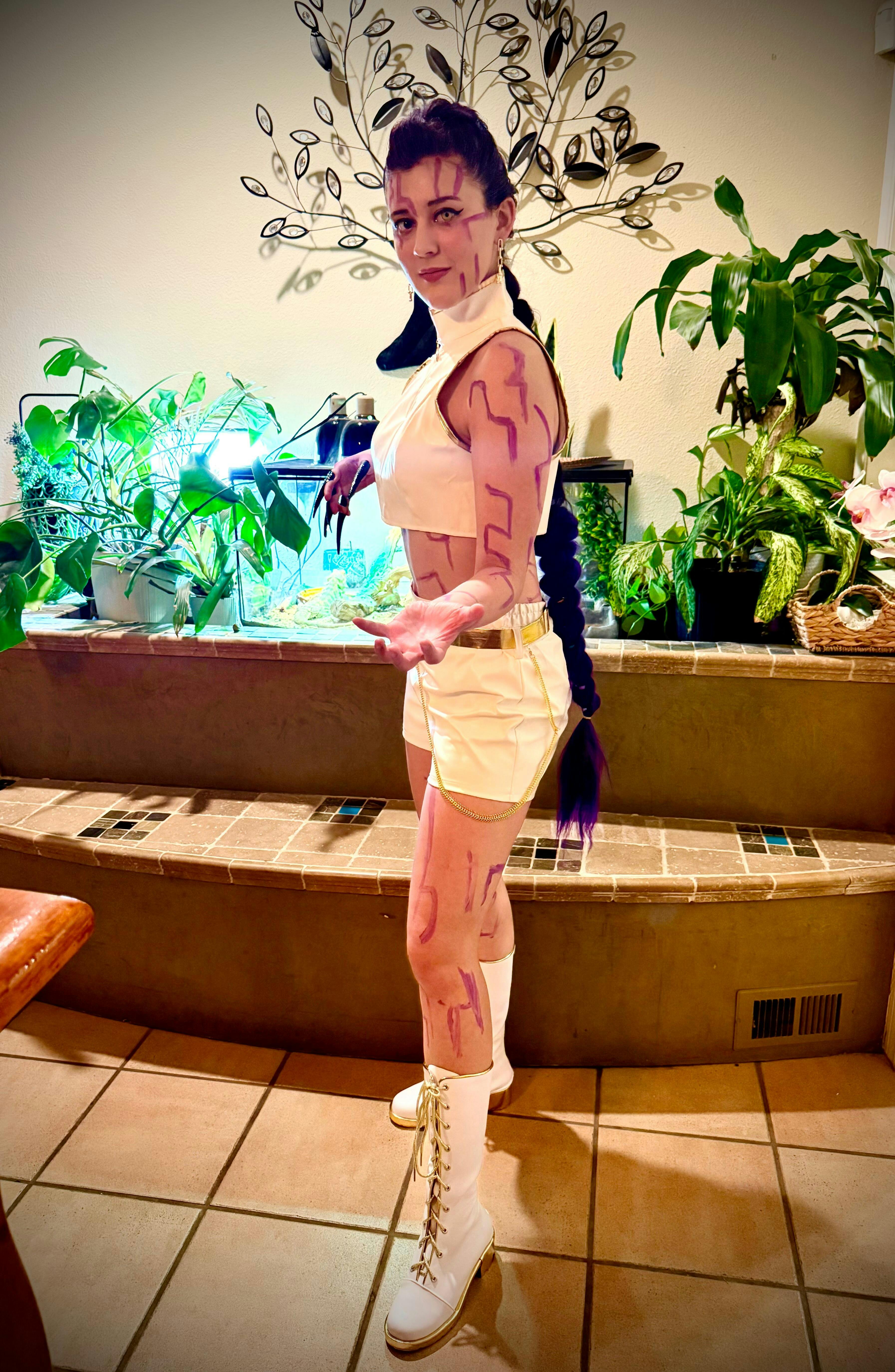 Features: This cosplay costume is based on the character Rumi White Stage Outfit from KPop Demon Hunters. It can be used in cosplay conventions and Halloween parties.
