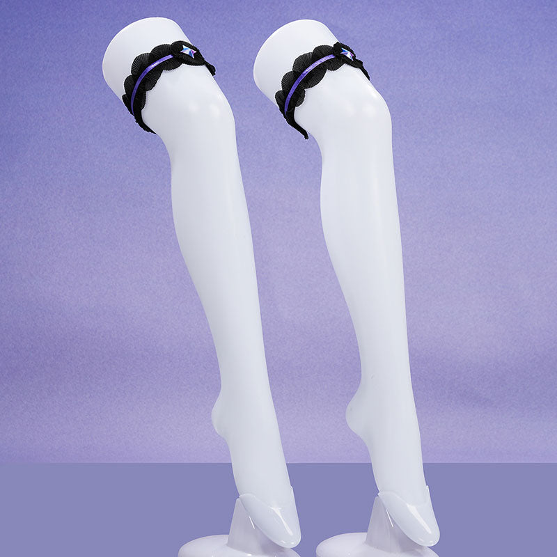 Included: Dress, front bow x1, back bow x1, waist bow x1, hat bow x1, hat x1, waistband x1, sleeves x2, thigh straps x2, collar x1, rings x2.