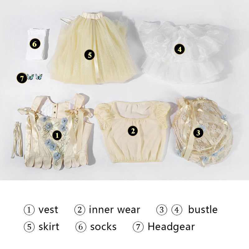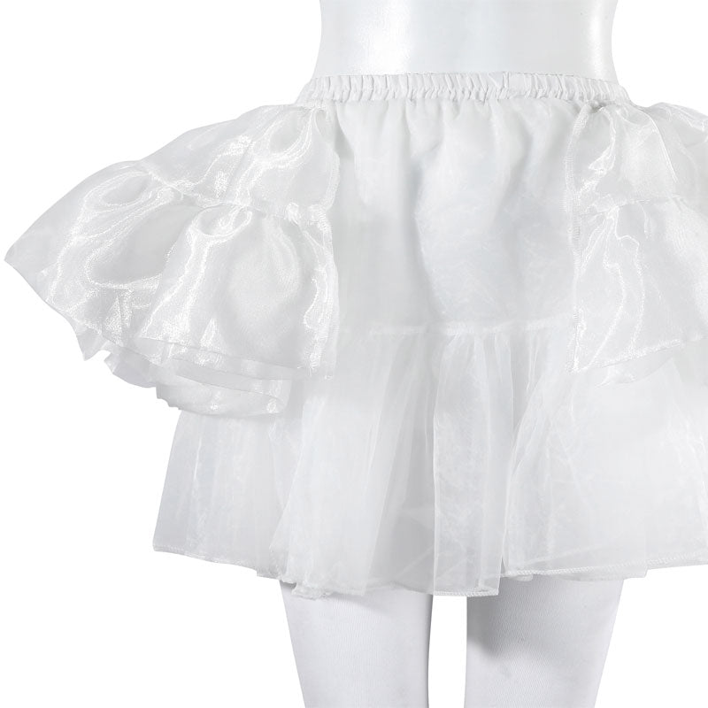Included: Vests, undershirts, birdcage-style crinolines, short crinolines, skirts, pantyhose, headwear.